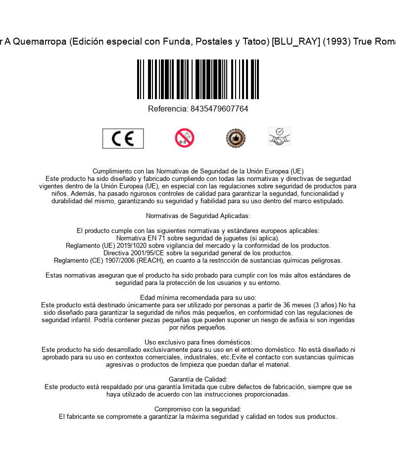 https://dvdstorespain.es/es/peliculas/90003-amor-a-quemarropa-bd-edicion-especial-con-funda-postales-tatoo-blu-ray--8435479607764.html90003Amor A Quemarropa (Edición especial con Funda, Postales y Tatoo) [BLU_RAY] (1993) True RomanceEl joven y solitario Clarence (Christian Slater) celebra su cumpleaños como de costumbre, viendo películas de kung-fu en un destartalado cine de Detroit. Estando en la sala conoce a Alabama (Patricia Arquette), una rubia explosiva con la que tiene una noche de pasión. Ella, en realidad, es una prostituta pagada por el mejor amigo de Clarence como regalo de cumpleaños. A pesar de ello, Clarence decide alejarla de la prostitución, pero tendrá que enfrentarse con su chulo (Gary Oldman) cuando va a recoger las pertenencias de Alabama. https://dvdstorespain.es/410774-home_default/amor-a-quemarropa-bd-edicion-especial-con-funda-postales-tatoo-blu-ray-.jpg12.3141instockResearch Entertainment12.314112.3141002021-09-07T00:25:21+0200/Inicio/Inicio/Blu-ray/Inicio/Películas/Inicio/Nuevos/Inicio/18 AÑOS SI D&O/Inicio/Homenaje a Val Kilmer