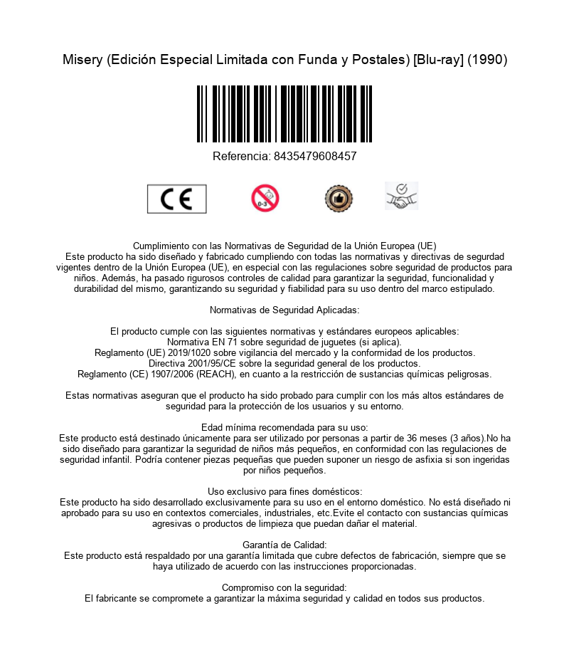 https://dvdstorespain.es/es/peliculas/92552-misery-edicion-especial-limitada-con-funda-y-postales-bd-1990-misery-blu-ray--8435479608457.html92552Misery (Edición Especial Limitada con Funda y Postales) [Blu-ray] (1990)Un escritor llamado Paul Sheldon (James Caan) lleva años malgastando su talento con unas románticas historias, de gran éxito comercial, cuya protagonista es una mujer llamada Misery. Decidido a acabar con esta situación, mata al personaje y se refugia en Colorado para escribir una novela seria. Terminado su trabajo, emprende el regreso, pero en una carretera de montaña, pierde el control de su coche y sufre un grave accidente. Annie Wilkes (Kathy Bates), una brusca e impetuosa mujer, gran admiradora suya, lo rescata, se lo lleva a su casa y lo cuida con esmero. Obsesionada con el personaje de Misery, retiene a Sheldon para obligarlo a escribir una nueva historia en la que resucite al personaje. https://dvdstorespain.es/340086-home_default/misery-edicion-especial-limitada-con-funda-y-postales-bd-1990-misery-blu-ray-.jpg12.3141instockResearch Entertainment12.314112.3141002022-03-10T00:00:00+0100/Inicio/Inicio/Blu-ray/Inicio/Películas/Inicio/Nuevos/Inicio/RECOMENDADOS/Inicio/18 AÑOS SI D&O/Inicio/Homenaje a Rob Reiner