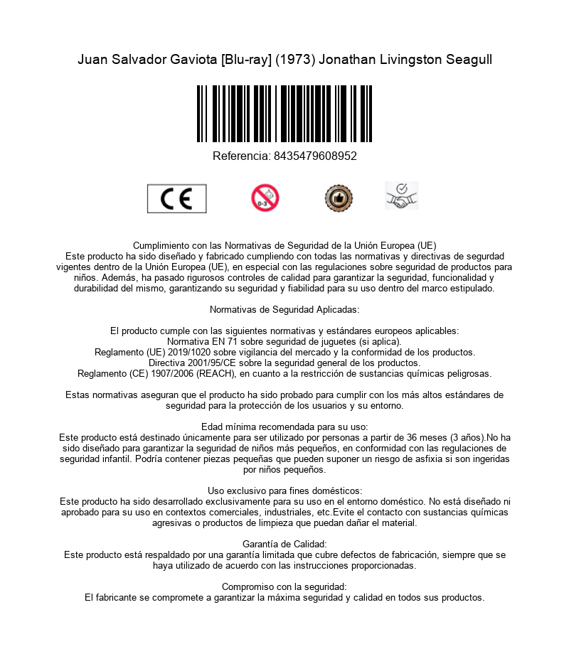 https://dvdstorespain.es/es/peliculas/96084-juan-salvador-gaviota-bd-1973-jonathan-livingston-seagull-blu-ray--8435479608952.html96084Juan Salvador Gaviota [Blu-ray] (1973) Jonathan Livingston SeagullJonathan es una gaviota cansada y aburrida de la apatía de su vida. Experimentando técnicas de vuelo, un día, se aleja de su grupo y descubre el mundo más allá del horizonte. Basada en la popular novela de Richard D. Bach, se trata de una película donde los animales son los personajes a los que ponen voces (en su versión original) conocidos actores como Philip Ahn, Richard Crenna, James Franciscus, Kelly Harmon, Hal Holbrook, David Ladd y Dorothy McGuire. https://dvdstorespain.es/562221-home_default/juan-salvador-gaviota-bd-1973-jonathan-livingston-seagull-blu-ray-.jpg8.6777instockResearch Entertainment8.67778.6777002022-10-11T00:00:00+0200/Inicio/Inicio/Blu-ray/Inicio/Películas/Inicio/Nuevos/Inicio/VELADA SP 40/Inicio/VELADA DE 75/Inicio/VELADA FR 75/Inicio/VELADA IT 75