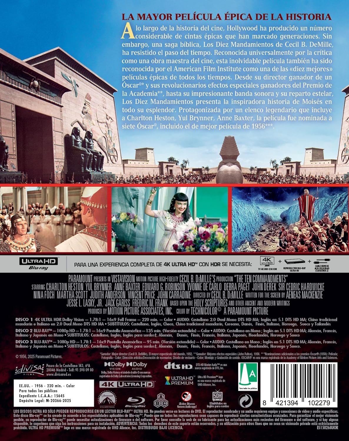 https://dvdstorespain.es/es/preventa/127221-los-diez-mandamientos-the-ten-commandments-1956-cecil-b-demille-4k-uhd-blu-ray-blu-ray-blu-ray-2025--8421394102279.html127221Los Diez Mandamientos (3 discos) [4K UHD, Blu-ray] (1956) The Ten CommandmentsDrama bíblico ambientado en el Antiguo Egipto que narra la historia de Moisés (Charlton Heston), favorito de la familia del faraón, que decide renunciar a su vida de privilegios para conducir a su pueblo, los hebreos esclavizados en Egipto, hacia la libertad.https://dvdstorespain.es/1088376-home_default/los-diez-mandamientos-the-ten-commandments-1956-cecil-b-demille-4k-uhd-blu-ray-blu-ray-blu-ray-2025-.jpg21.4876instockDivisa HV - Paramount21.487621.4876002025-10-10T21:15:50+0200/Inicio/Inicio/Películas/Inicio/4K-UHD/Inicio/Preventa