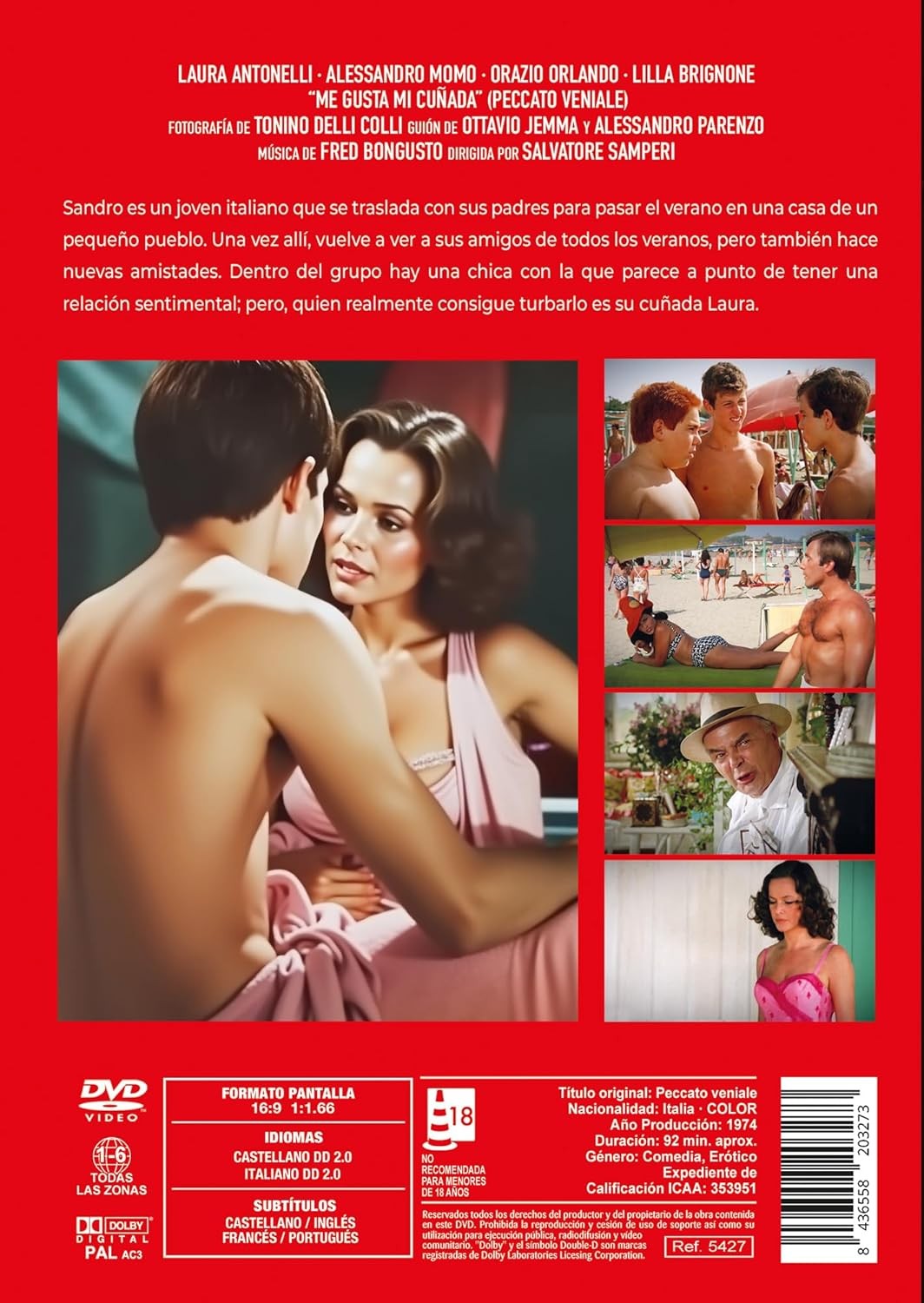 https://dvdstorespain.es/es/preventa/127492-me-gusta-mi-cunada-dvd-1974-peccato-veniale-dvd-0003--8436558203273.html127492Me Gusta mi Cuñada [DVD] (1974) Peccato venialeSandro es un joven italiano que se traslada con sus padres para pasar el verano en una casa de un pequeño pueblo. Una vez allí, vuelve a ver a sus amigos de todos los veranos, pero también hace nuevas amistades. Dentro del grupo hay una chica con la que parece a punto de tener una relación sentimental; pero, quien realmente consigue turbarlo es su cuñada Laura. https://dvdstorespain.es/1093579-home_default/me-gusta-mi-cunada-dvd-1974-peccato-veniale-dvd-0003-.jpg5.7025instockResearch5.70255.7025002025-10-24T17:33:16+0200/Inicio/Inicio/DVD/Inicio/Películas/Inicio/Preventa