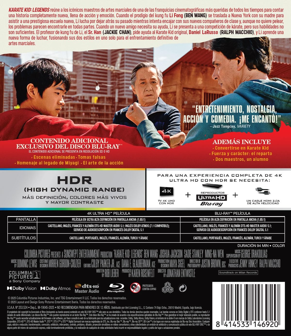 https://dvdstorespain.es/es/preventa/127577-karate-kid-legends-4k-uhd-bd-blu-ray-2025--8414533146920.html127577Karate Kid: Legends [4K UHD, Blu-ray ] (2025)Tras una tragedia familiar, una joven promesa del kung fu, Li Fong, se ve obligado a abandonar su hogar en Pekín y trasladarse a Nueva York con su madre. Li lucha por dejar atrás su pasado mientras intenta encajar con sus nuevos compañeros de clase y, aunque no quiere pelear, los problemas parecen encontrarle en todas partes. Cuando un nuevo amigo necesita su ayuda, Li se presenta a una competición de kárate, pero sus habilidades no son suficientes. El profesor de kung fu de Li, el Sr. Han, pide ayuda al "Karate Kid" original, Daniel LaRusso, y Li aprende una nueva forma de luchar, fusionando sus dos estilos en uno solo para el enfrentamiento definitivo de artes marciales. Nueva película de la saga "Karate Kid", conectada al universo de "Cobra Kai".https://dvdstorespain.es/1094873-home_default/karate-kid-legends-4k-uhd-bd-blu-ray-2025-.jpg22.2314instockARVI22.231422.2314002025-10-29T02:36:40+0100/Inicio/Inicio/Películas/Inicio/4K-UHD/Inicio/Preventa