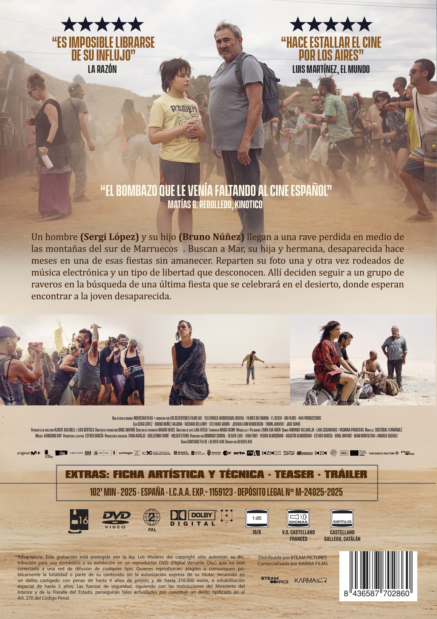 Un hombre (Sergi López) y su hijo (Bruno Núñez) llegan a una rave perdida en Marruecos. Buscan a Mar, su hija y hermana, desaparecida hace meses en una de esas fiestas sin amanecer. Reparten su foto una y otra vez rodeados de música electrónica y un tipo de libertad que desconocen. Conocen a un grupo de raveros y deciden seguirlos a una última fiesta que se celebrará en el desierto, donde esperan encontrar a la joven desaparecida.