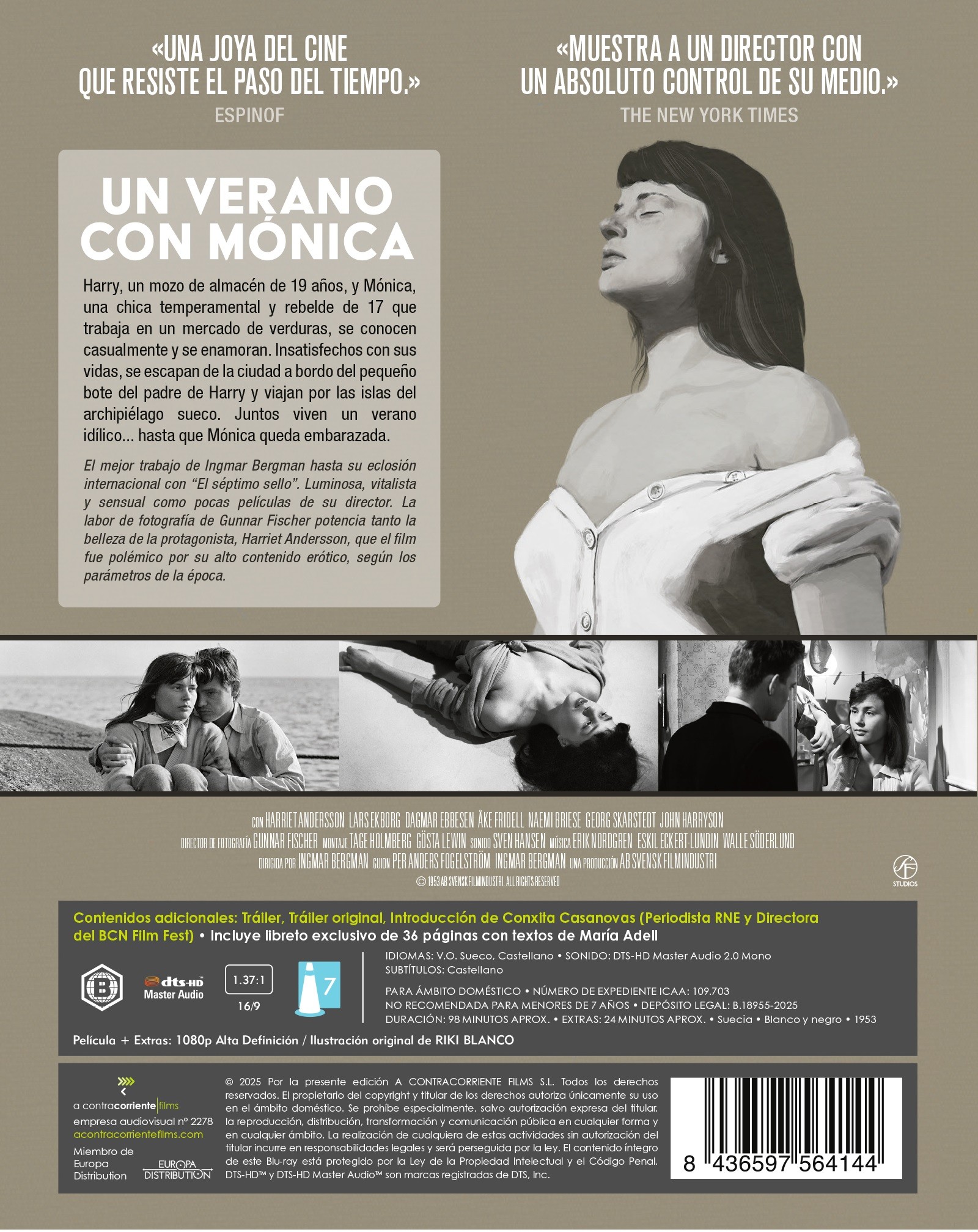 https://dvdstorespain.es/es/preventa/127690-un-verano-con-monica-blu-ray-libreto-1953-sommaren-med-monika-8436597564144.html127690Un Verano Con Mónica [Blu-ray, Libreto] (1953) Sommaren med MonikaHarry Lund, de 19 años, trabaja en un almacén de vidrio y porcelana. Cerca de ahí trabaja Mónica en un almacén de vegetales. Mónica es una chica de 17 años alegre y feliz. Ella empieza una conversación con él al verlo en un café. Después de un tiempo se enamoran. Los dos son hostigados en su empleo por su edad. Mónica abandona su casa después de una discusión con su padre y Harry deja su trabajo después de una discusión con su jefe. Sin nada que los ate a la ciudad, toman el pequeño bote de Harry al archipiélago para pasar unas semanas a solas.https://dvdstorespain.es/1100530-home_default/un-verano-con-monica-blu-ray-libreto-1953-sommaren-med-monika.jpg15.6198instockA Contracorriente Films, S.L.15.619815.6198002025-11-04T13:16:00+0100/Inicio/Inicio/Blu-ray/Inicio/Películas/Inicio/Preventa