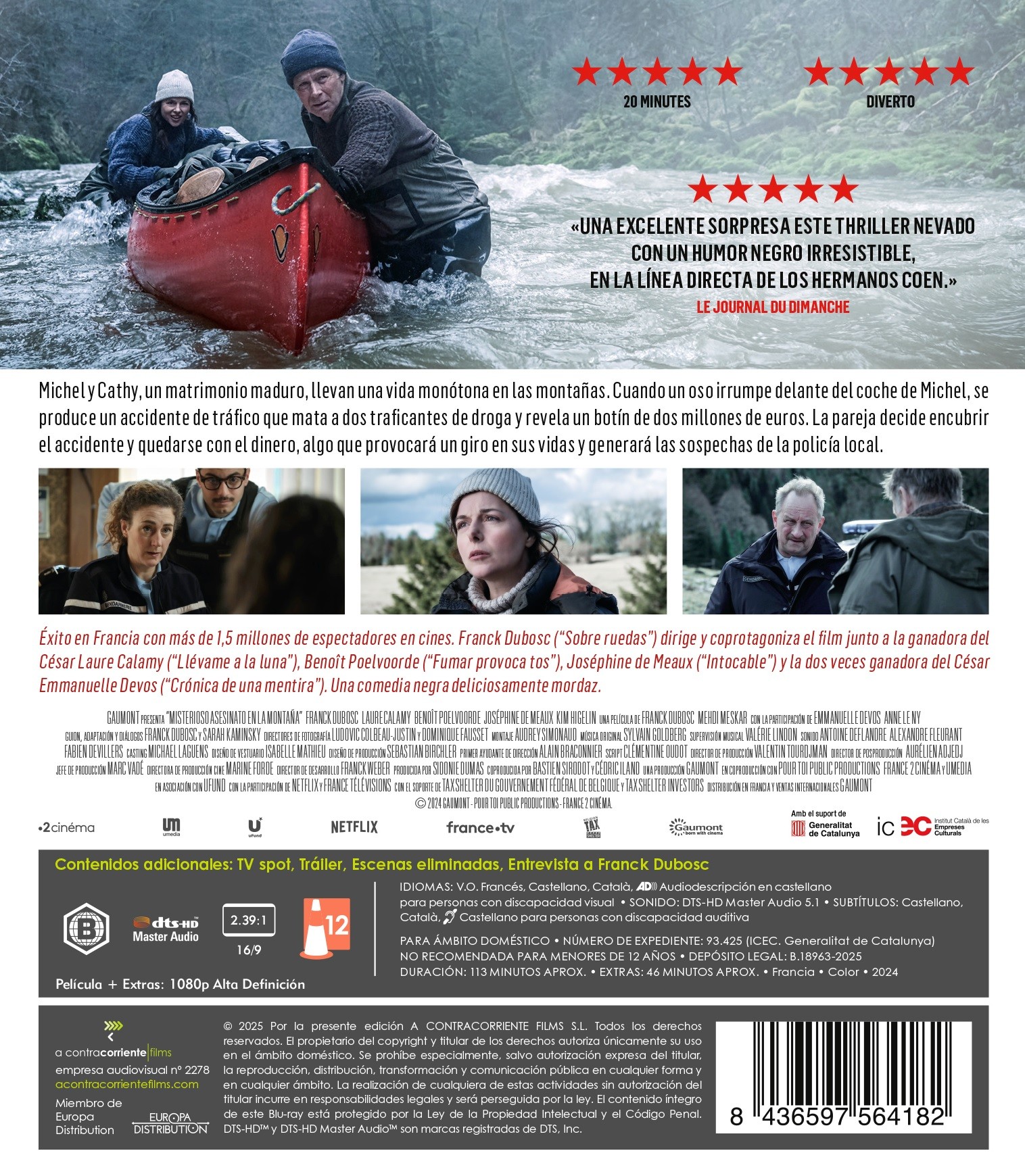 https://dvdstorespain.es/es/preventa/127694-misterioso-asesinato-en-la-montana-blu-ray-2025--8436597564182.html127694Misterioso Asesinato En La Montaña [Blu-ray] (2024) Un ours dans le JuraMichel y Cathy, vendedores de árboles de Navidad, viven en un pequeño pueblo del Jura con su hijo de 12 años, Doudou, un niño con un comportamiento difícil. Ahogados por las deudas y otros problemas económicos, la pareja se deteriora poco a poco. Hasta que un día, al volver a casa, Michel evita por poco atropellar a un oso en la carretera; su coche termina chocando con otro, matando en el acto a sus dos ocupantes. Tras informar a Cathy, ambos deciden deshacerse de los cuerpos. Pero al hacerlo, descubren en el maletero un bolso lleno de dinero, que calculan en más de dos millones de euros. Para evitar las sospechas, están dispuestos a aceptar las ideas más descabelladas, sin saber siquiera en qué absurdo desembocarán.https://dvdstorespain.es/1100510-home_default/misterioso-asesinato-en-la-montana-blu-ray-2025-.jpg13.1405instockA Contracorriente Films, S.L.13.140513.1405002025-11-04T13:16:27+0100/Inicio/Inicio/Blu-ray/Inicio/Películas/Inicio/Preventa