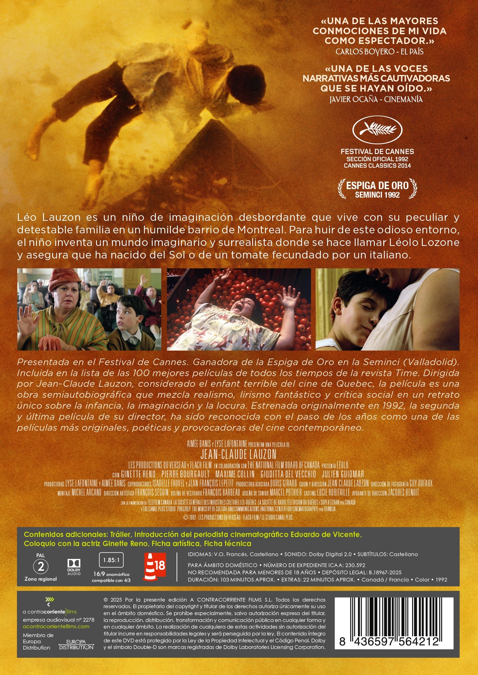 https://dvdstorespain.es/es/preventa/127697-leolo-dvd-2025--8436597564212.html127697Léolo [DVD] (1992)Léo Lauzon es un niño que vive en un humilde barrio de Montreal, atrapado en una sórdida existencia. Cada noche intenta evadirse por medio de los recuerdos, los sueños y su desbordante imaginación, pero la cruda realidad familiar interrumpe siempre sus fantasías: tiene un padre obsesionado por la salud intestinal de toda la familia, un hermano culturista que vive preso del miedo, dos hermanas que padecen trastornos mentales, un abuelo a quien nadie presta demasiada atención y una madre enorme que domina el microcosmos familiar.https://dvdstorespain.es/1100488-home_default/leolo-dvd-2025-.jpg12.3141instockA Contracorriente Films, S.L.12.314112.3141002025-11-04T13:16:54+0100/Inicio/Inicio/DVD/Inicio/Películas/Inicio/Preventa