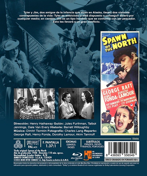 https://dvdstorespain.es/es/preventa/127773-lobos-del-norte-8436593556549.html127773Lobos Del Norte [Blu-ray R] (1938) Spawn of the NorthTyler (George Raft) y Jim (Henry Fonda), dos amigos de la infancia que viven en Alaska, tienen dos visiones contrapuestas de la vida: Tyler es ambicioso y está dispuesto a conseguir dinero por cualquier medio; en cambio, Jim es un tipo honesto que se conforma con ser pescador de atunes. Tyler llega incluso a aliarse con unos piratas rusos para robarle a Jim la mercancía pescada. Costosa producción de la Paramount que se vio recompensada con un Oscar Especial a la fotografía.https://dvdstorespain.es/1098923-home_default/lobos-del-norte.jpg9.0909instock9.09099.0909002025-11-07T20:21:46+0100/Inicio/Inicio/Películas/Inicio/Preventa/Inicio/Blu-ray R