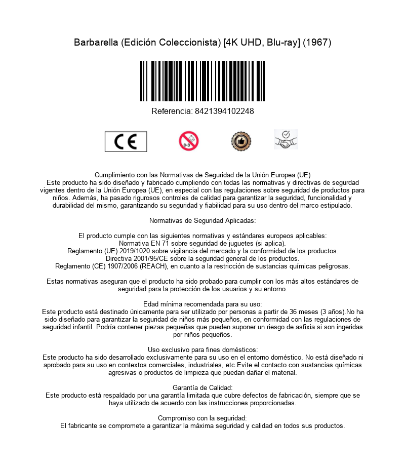 https://dvdstorespain.es/es/preventa/127837-barbarella-ed-coleccionista-1967-roger-vadim-4k-uhd-blu-ray-blu-ray-2025--8421394102248.html127837Barbarella (Edición Coleccionista) [4K UHD, Blu-ray] (1967)Año 40.000. Planeta Lythion. La intrépida Barbarella aterriza en un misterioso planeta donde vivirá toda clase de aventuras, peligros y placeres.https://dvdstorespain.es/1099898-home_default/barbarella-ed-coleccionista-1967-roger-vadim-4k-uhd-blu-ray-blu-ray-2025-.jpg41.2397instockDivisa HV - Paramount41.239741.2397002025-11-12T09:30:57+0100/Inicio/Inicio/Películas/Inicio/4K-UHD/Inicio/Preventa