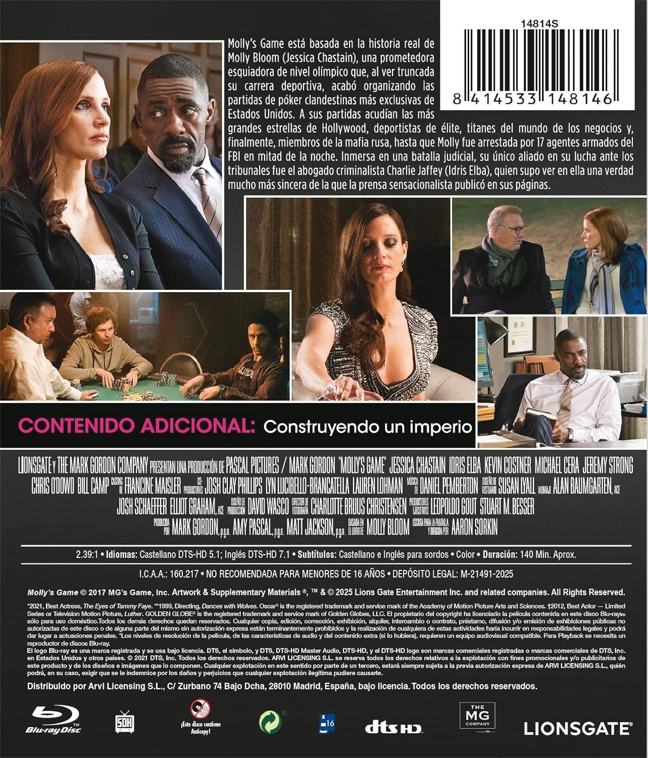 https://dvdstorespain.es/es/preventa/128071-molly-s-game-bd-blu-ray-2025--8414533148146.html128071Molly'S Game [Blu-ray] (2017)Se centra en la vida de Molly Bloom, una esquiadora de talla mundial que llegó a ser millonaria antes de los 21 años. Tras perderse los Juegos Olímpicos, Molly se trasladó a vivir a Los Ángeles, donde incluso trabajó de camarera. Gracias a su inteligencia y sus dotes empresariales, la joven acabó ganando millones de dólares organizando partidas póker antes de que el FBI la investigara. https://dvdstorespain.es/1104103-home_default/molly-s-game-bd-blu-ray-2025-.jpg11.7355instockARVI11.735511.7355002025-11-25T06:34:09+0100/Inicio/Inicio/Blu-ray/Inicio/Películas/Inicio/Preventa