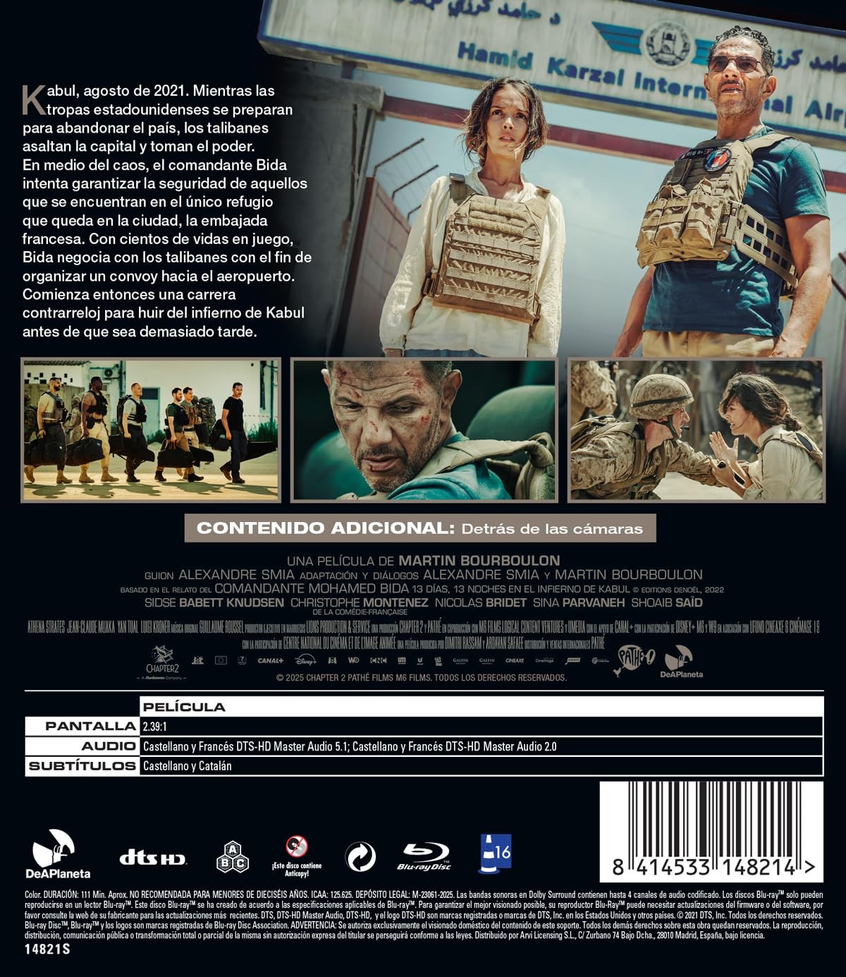 Kabul, agosto de 2021. Mientras las tropas estadounidenses se preparan para abandonar el país, los talibanes asaltan la capital y toman el poder. En medio del caos, el comandante Bida intenta garantizar la seguridad de aquellos que se encuentran en el único refugio que queda en la ciudad, la embajada francesa. Con cientos de vidas en juego, Bida negocia con los talibanes con el fin de organizar un convoy hacia el aeropuerto. Comienza entonces una carrera contrarreloj para huir del infierno de Kabul antes de que sea demasiado tarde.