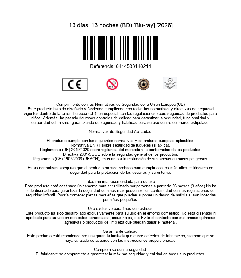 https://dvdstorespain.es/es/preventa/128441-13-dias-13-noches-bd-blu-ray-2026--8414533148214.html12844113 Días, 13 Noches [Blu-ray] (2025) 13 jours, 13 nuitsKabul, agosto de 2021. Mientras las tropas estadounidenses se preparan para abandonar el país, los talibanes asaltan la capital y toman el poder. En medio del caos, el comandante Bida intenta garantizar la seguridad de aquellos que se encuentran en el único refugio que queda en la ciudad, la embajada francesa. Con cientos de vidas en juego, Bida negocia con los talibanes con el fin de organizar un convoy hacia el aeropuerto. Comienza entonces una carrera contrarreloj para huir del infierno de Kabul antes de que sea demasiado tarde.https://dvdstorespain.es/1112332-home_default/13-dias-13-noches-bd-blu-ray-2026-.jpg18.0992instockARVI18.099218.0992002025-12-20T06:32:15+0100/Inicio/Inicio/Blu-ray/Inicio/Películas/Inicio/Preventa
