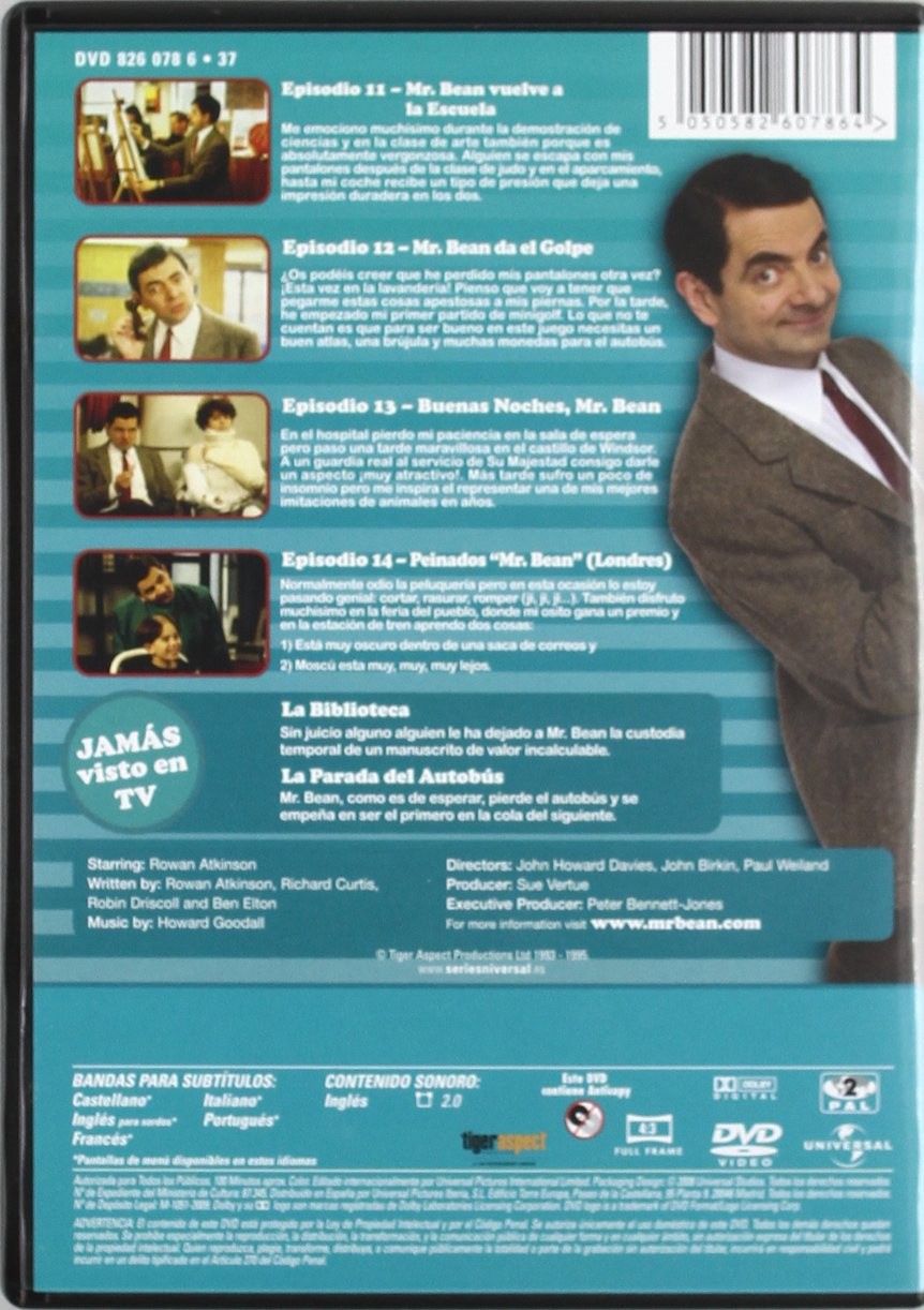 https://dvdstorespain.es/es/series-dvd-blu-ray/127354-mr-bean-vol-3-6-episodios-dvd-2009--5050582607864.html127354Mr. Bean (Vol. 3, 6 episodios) [DVD] (1990)Serie de TV (1990-1995). 15 episodios. Serie que a través de numerosos sketches narra las desventuras de un peculiar y humorístico personaje, Mr. Bean, un adulto de mente profundamente simple al que cualquier tarea, por sencilla que sea, le supone una extraordinaria labor que siempre se le complica hasta extremos insospechadamente divertidos. https://dvdstorespain.es/1091229-home_default/mr-bean-vol-3-6-episodios-dvd-2009-.jpg6.6116instockUniversal6.61166.6116002025-10-20T20:16:21+0200/Inicio/Inicio/DVD/Inicio/Series de TV/Inicio/Nuevos